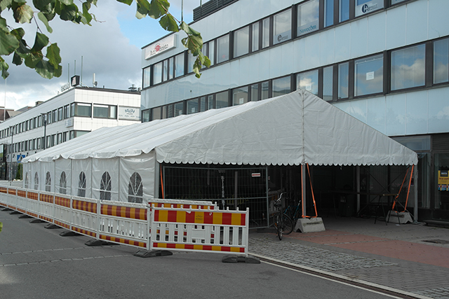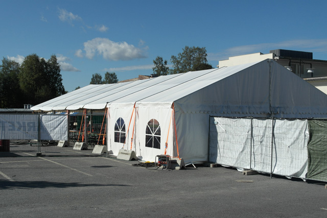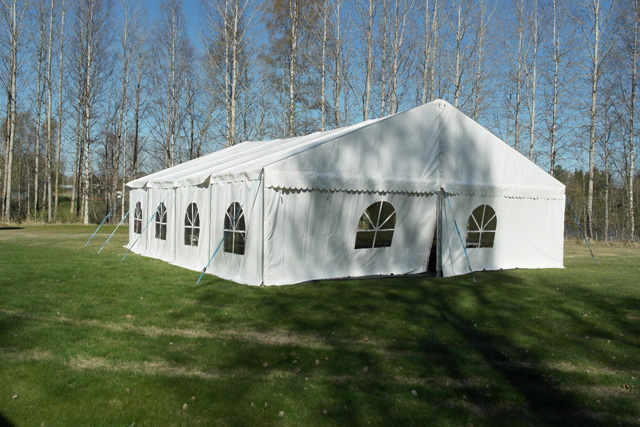 Juhlateltta 6X12 Kasattuna ja purettuna |
